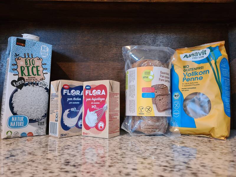 Niveau lait végétal, c'est celui qui me convient le mieux en goût. Légèrement sucré, il donne l'impression de boire du riz au lait liquide. Il passe facilement avec tout type de recette, même pour du salé comme une béchamel, et il est également bon à boire tout seul. Sur la photo, c'est celui que vous pouvez trouver à la Coop. Mais la Migros en a également de très bons en rayon!